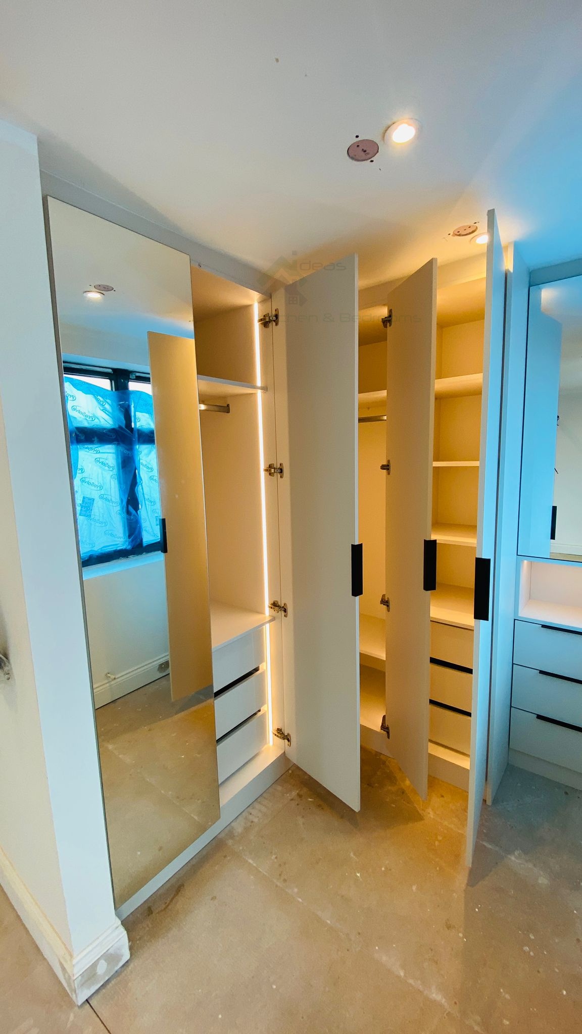 After having several companies come and quote me for my bedroom furniture all out of budget and extremely high quotes- Ideas Came round & designed me a lovely bedroom so that I had so much storage (more wardrobes and dressing table for less cost than the other expensive quotes!!) Looks fantastic and great quality. Workmen weRe very professional and tidy. I will defiantly be recommending this company in the future, I cannot fault!